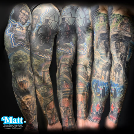 Matt has been tattooing since 2010, and he loves it. Some of his favorite subjects to tattoo are Disney characters, Star Wars, anime, and anything else pop culture.